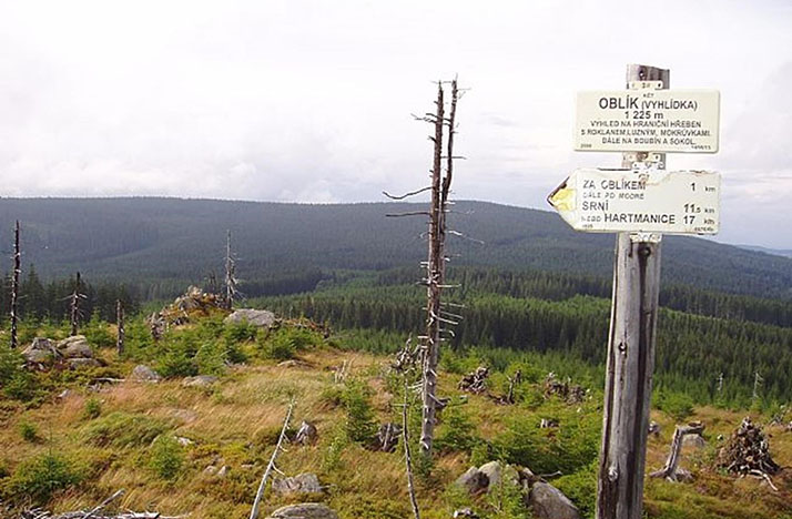 Jen co by kamenem dohodil od Srní, v srdci Národního parku Šumava najdou návštěvníci jihozápadních Čech Oblík. 1 225 metrů vysoká hora, německy zvaná Steiningberg, se rozkládá v oblasti Kvildských plání v povodí řeky Vydry a těm, kteří na ni vystoupí, nabízí překrásné výhledy. Za příznivých podmínek se z vrcholové skály Oblíku otevírají kruhové výhledy na Poledník, Kašperk, Srní, Huťskou horu, Boubín, Černou horu, Velkou Mokrůvku nebo Luzný.